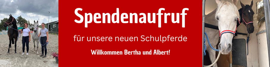 Ein solcher Zuwachs bringt nicht nur Freude, sondern auch erhebliche Kosten mit sich. Um die Anschaffung der beiden Pferde bestmöglich zu finanzieren, sind wir auf eure Unterstützung angewiesen. Jeder Beitrag – ob groß oder klein – hilft uns dabei, Bertha und Albert ein gutes Zuhause im Verein zu bieten und weiterhin ein vielfältiges, tiergestütztes Angebot für Kinder, Jugendliche und Erwachsene aufrechtzuerhalten.